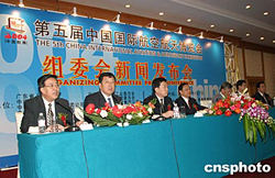 八月二十日,中國航展組委會(huì)在北京舉行的新聞發(fā)布會(huì)上宣布:第五屆中國國際航空航天博覽會(huì)將十一月一日在廣東省珠海市舉行。屆時(shí),還將舉辦“二零零四中國國際航空航天高峰論壇。中新社記者:史利