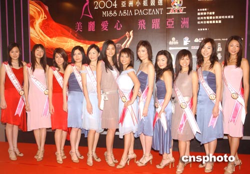 “2004亞洲小姐競選”香港區12位佳麗20日在香港亮相﹐她們將在新選制下角逐六位代表晉身十月二十四日的總決賽。中新社記者:趙振清