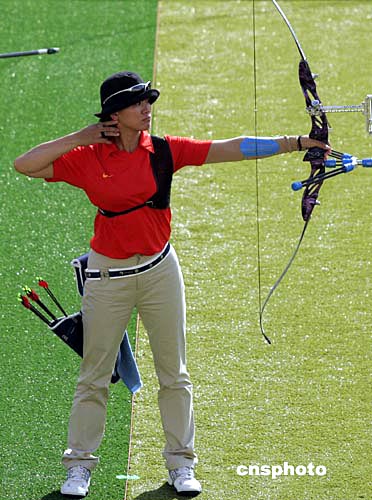 當地時間8月20日下午,中國女子射箭隊(左)獲得雅典奧運會女子射箭團體銀牌,中國臺北隊(右)獲得銅牌,實力雄厚的韓國隊奪得冠軍。中新社記者:張煒