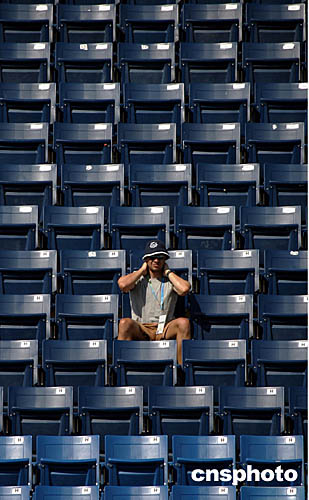 圖為在當地時間8月20日舉行的女子50米自由泳比賽中,偌大一個看臺只有一名觀眾。
