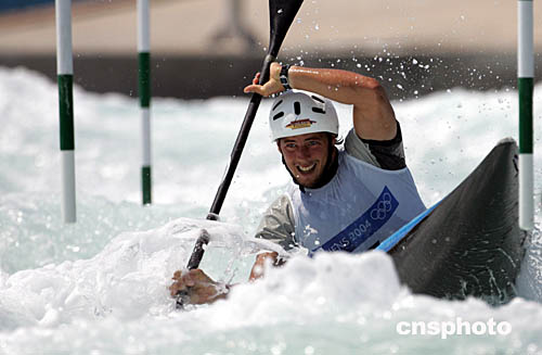 圖為法國選手在當地時間8月20日舉行的男子皮劃艇比賽時的精彩表現。