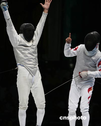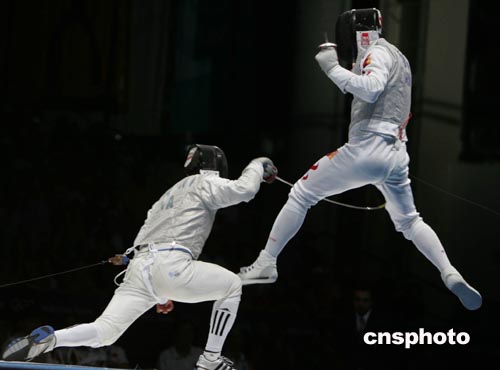當地時間8月21日晚,由葉沖、董兆致、吳漢雄組成的中國男子花劍隊經過近兩個小時激戰,以42比45惜敗于意大利隊,獲得花劍團體亞軍。中新社記者:任晨鳴