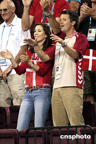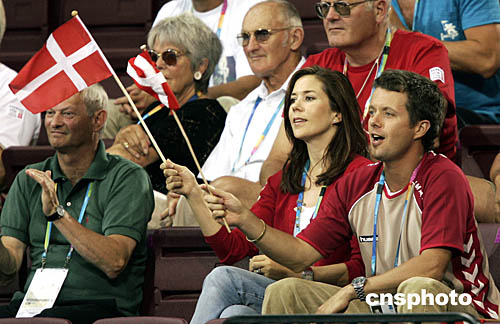 圖為丹麥王子弗雷德里克(Frederik)和他的妻子瑪莉·唐納森(Mary)親臨現場為選手們助威。