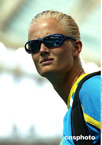 圖為瑞典名將克魯夫特(Kluft Carolina)參加比賽時的照片。最后他榮獲女子七項全能賽冠軍。