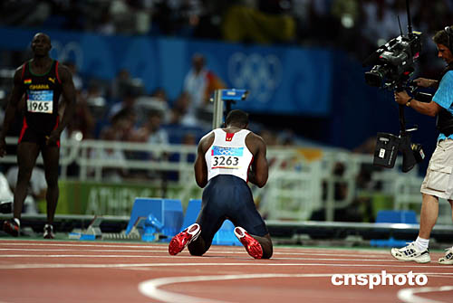 美國選手加特林(Justin Gatlin)在當地時間8月22日舉行的男子100米“飛人”大戰中力壓群雄奪取桂冠。圖為他在奪冠后興奮的慶祝自己的勝利。