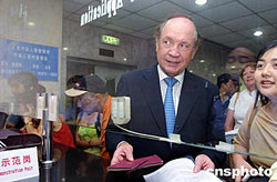 八月二十三日,上海公安局出入境管理局根據《外國人在中國永久居留審批管理辦法》,開始正式受理駐滬外國人在中國永久居留的申請。圖為西門子(中國)有限公司執行副總裁博格在提交申請表。作者:湯彥俊