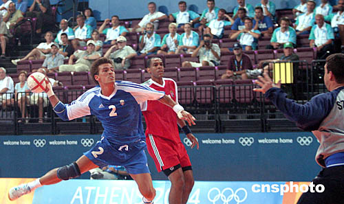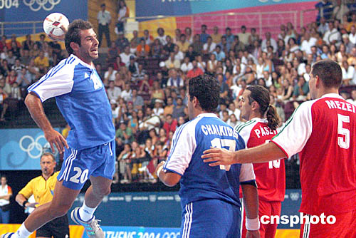 在當地時間8月22日舉行的男子手球比賽中,希臘隊員奮力拼搏,但難逃失敗命運。最后以22比26不敵匈牙利隊。