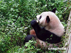 二00四年六月下旬從日本回到故鄉(xiāng)的大熊貓“彬彬”經(jīng)過(guò)兩個(gè)月的檢疫后,于八月二十三日在成都大熊貓繁育研究基地離開(kāi)檢疫館住進(jìn)它的仿生獸舍,開(kāi)始與游人見(jiàn)面。作者:魯彥