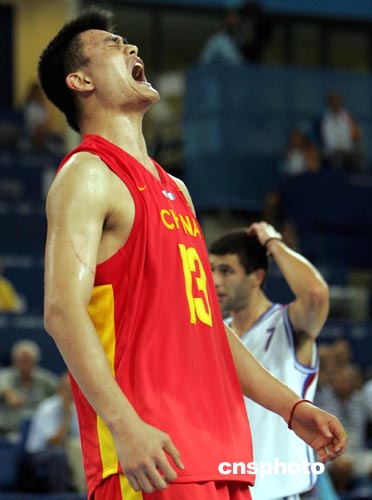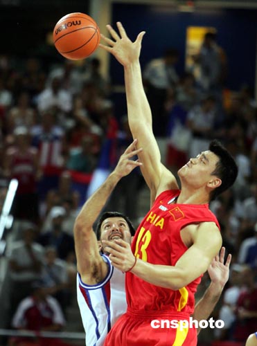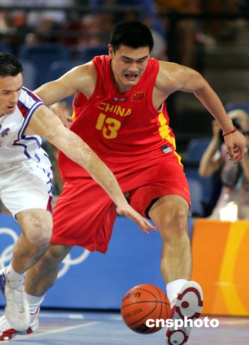 當(dāng)?shù)貢r(shí)間八月二十三日下午,中國男籃在雅典奧運(yùn)會(huì)小組賽最后一場比賽中以67:66一分險(xiǎn)勝塞黑隊(duì),闖入前八名,姚明打滿全場,依然是球隊(duì)獲勝的頂梁柱。中新社記者:任晨鳴