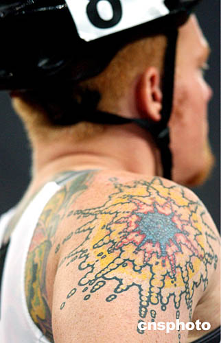 圖為加拿大選手Jeffrey Adams身上的個(gè)性文身特寫鏡頭。