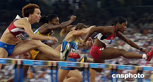 圖為在女子100米欄和男子跳高比賽中選手們表現(xiàn)出色。