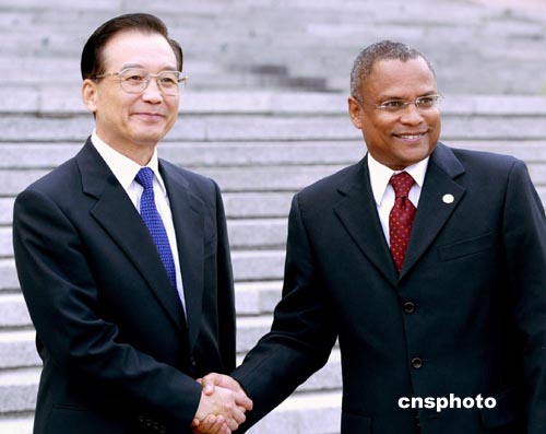 溫家寶說,中佛建交二十八年來,兩國關系一直發展得很好,在眾多領域開展了富有成效的互利合作。政治上,兩國始終相互尊重,平等相待;經濟上,兩國一貫互惠互利,經貿合作取得了良好的經濟和社會效益。中方對兩國關系良好的發展勢頭感到滿意,對佛得角歷屆政府堅持一個中國政策表示感謝。