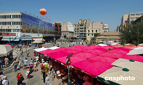 圖為來自四面八方的人們聚集到蒙納斯提拉奇廣場(Monastiraki)跳蚤市場來買賣商品。奧運會給希臘帶來了無限商機。