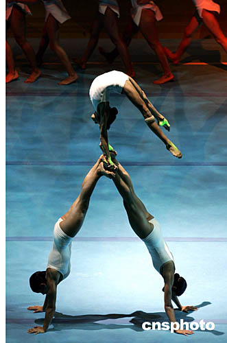 圖為在當地時間8月24的體操展覽館里孩子們的精彩表演。