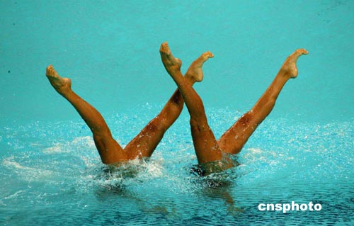 圖:美國(guó)隊(duì)的雙人花樣游泳 (2004-08-25)