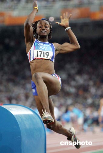 當地時間八月二十五日晚,在雅典奧運會田徑女子跳遠預賽中,世界冠軍、法國選手巴貝爾在預賽中的最好成績僅為六米三七,無緣決賽。中新社記者:毛建軍