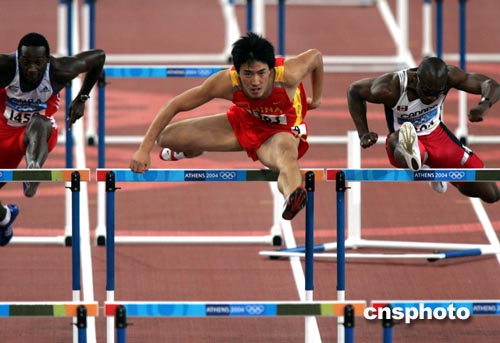 今天比賽中,劉翔被安排在第一組第四道,出發(fā)后他一路領(lǐng)先,在跨過(guò)最后一個(gè)欄時(shí)還有一個(gè)身位的優(yōu)勢(shì),隨后他放慢了步子。牙買(mǎi)加的維格納爾以十三秒一七的成績(jī)居小組第一。