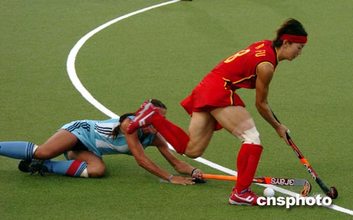 雅典時間八月二十六日,中國女子曲棍球隊與阿根廷隊爭奪銅牌,結(jié)果最后一分鐘丟失一球,以0比一飲恨獲得第四名。作者:陳佳