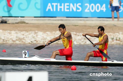 當地時間八月二十七日,在雅典奧運會男子雙人劃艇一千米比賽中,中國選手孟關良、楊文軍獲得第九名。中新社記者:毛建軍