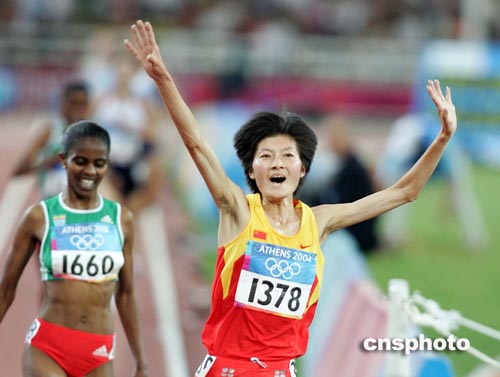 然而中國人興奮的情緒還沒有冷卻,又一匹“東方神鹿”再現雅典——刑慧娜勇奪女子萬米金牌,她在沖刺階段依然保持了良好的體力和狀態,并在最后一個直道甩開此前一直領先的埃塞俄比亞選手率先沖線。