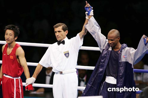 | 當(dāng)?shù)貢r(shí)間8月27日,中國選手鄒市明(左)在奧運(yùn)會(huì)拳擊男子48公斤級(jí)半決賽中,負(fù)于古巴強(qiáng)手揚(yáng)·巴特雷米,無緣決賽。由于奧運(yùn)會(huì)拳擊比賽不再進(jìn)行三四名的爭(zhēng)奪,因此鄒市明已經(jīng)獲得銅牌。這是中國拳手在奧運(yùn)會(huì)上歷史性的突破,中國拳手此前在奧運(yùn)會(huì)上從未進(jìn)入過前4名。中新社記者:毛建軍
