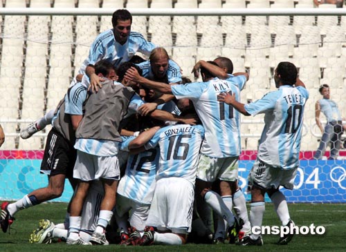 當(dāng)?shù)貢r(shí)間8月28日中午,雅典奧運(yùn)會(huì)男子足球在主體育場(chǎng)舉行。實(shí)力強(qiáng)大的世界勁旅阿根廷隊(duì)以1比0擊敗同是南美的巴拉圭隊(duì),獲得冠軍。中新社記者:任晨鳴
