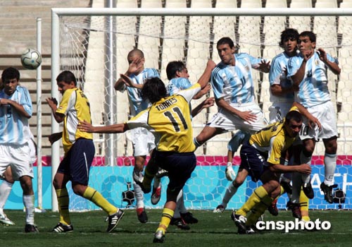 中新社雅典八月二十八日電 (記者 宋方燦)奧運(yùn)會(huì)男子足球比賽今天在雅典謝幕,阿根廷隊(duì)在決賽中以一比0力克南美近鄰巴拉圭隊(duì),奪取金牌。特維茲打入了本場(chǎng)比賽的唯一入球,這也是他在本屆奧運(yùn)會(huì)中的第八個(gè)進(jìn)球。巴拉圭隊(duì)在下半時(shí)兩人被紅牌罰下,最后僅以九人應(yīng)戰(zhàn)。