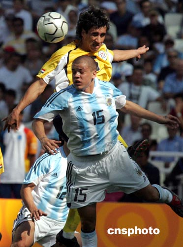當(dāng)?shù)貢r間8月28日中午,雅典奧運(yùn)會男子足球在主體育場舉行。實(shí)力強(qiáng)大的世界勁旅阿根廷隊(duì)以1比0擊敗同是南美的巴拉圭隊(duì),獲得冠軍。在世界杯、南美杯等重大賽事上屢屢遭受敗績的阿根廷隊(duì),終于獲得了一項(xiàng)被職業(yè)足球界視為“雞肋”的冠軍。阿根廷隊(duì)10號卡洛斯在上半場攻入全場唯一的進(jìn)球,之后雙方都有多次機(jī)會改寫比分,但都無功而返;巴拉圭隊(duì)有兩名球員被紅牌罰下;獲勝后的阿根廷球隊(duì)在藍(lán)天白云下,在奧運(yùn)會主火炬的映照下狂歡慶祝。中新社記者:任晨鳴