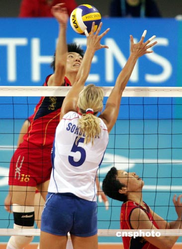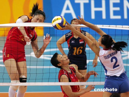 當地時間八月二十八晚,中國女排在雅典奧運會女排決賽中先失兩局的情況下,連扳三局,最終以三比二戰勝俄羅斯隊而獲得冠軍。中新社記者:毛建軍