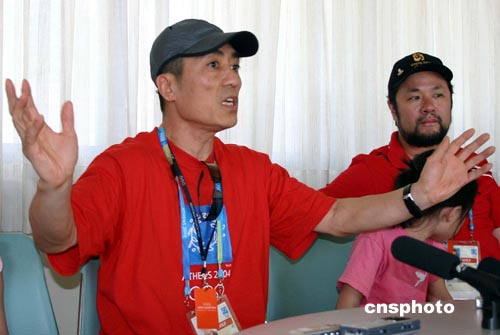 中國(guó)導(dǎo)演張藝謀于當(dāng)?shù)貢r(shí)間二十八日在雅典會(huì)見(jiàn)記者,透露中國(guó)演員在奧運(yùn)會(huì)閉幕式上的八分鐘表演將體現(xiàn)“百分百中國(guó)特色”。作者:章敦華