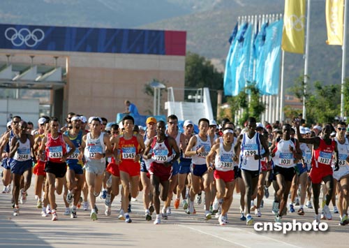 在奧林匹克回到故鄉的今次雅典奧運會,馬拉松比賽的路線與當年菲迪皮德斯和西拜羅斯所跑過的路線一致,起點位于馬拉松,終點設在帕納辛奈科體育場,路線全長四十二點一九五公里。