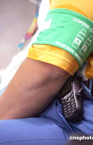 圖為出現在男子4×400米接力賽現場的藥檢人員。