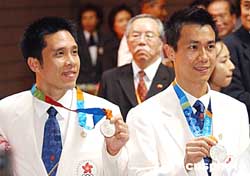 為歡迎香港奧運代表,香港政府特別于8月31日在尖沙嘴文化中心舉行正式的歡迎儀式。現場一早有數百名市民等候,熱烈歡迎奧運代表及榮獲奧運乒乓球男子雙打銀牌得主高禮澤、李靜。作者:洪少葵