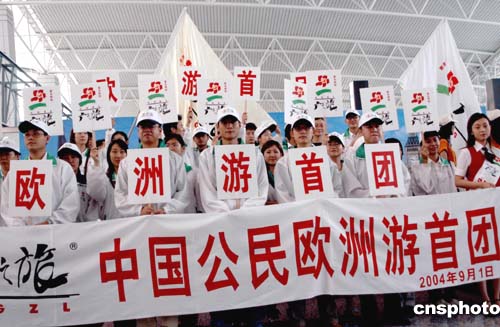 九月一日,首批準備出發游歐洲的廣州游客匯集廣州新白云機場。歐洲游今日起全面開放,有資質的國際旅行社將獲批在今日后,可以向總共29個歐洲國家開展中國公民自費組團出境游業務,中國大陸即將掀起歐洲旅游熱。作者:劉衛勇