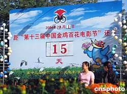 九月一日,在寧夏首府銀川中山公園,“第十三屆中國金雞百花獎電影節(jié)”倒計時顯示牌異常醒目。“電影節(jié)九月十六日將于銀川開幕,屆時張柏芝、林志炫、閻維文、韓紅、劉歡、騰格爾等眾多的影視明星、當紅歌星及影迷云集銀川。作者:劉呈軍