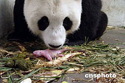 據了解,今年八月剛滿五歲的“華美”一九九九年出生于美國圣地亞哥動物園,今年二月十三日回到四川臥龍定居,它是采用人工授精技術在美國出生并存活的第一只熊貓幼仔。今年四月下旬,已是個“大姑娘”的“華美”發情后,專家們特地為“華美”找了個“如意郎君”大熊貓“靈靈”。五月二日,這兩只大熊貓成功地實現了本交。為增加“華美”受孕的成功機率,科研人員在本交后的幾天里又對她進行了四次人工授精。“華美”終于成功懷孕產仔。
