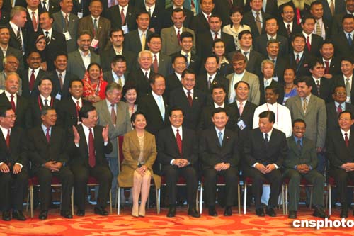 中新網9月3日電 中共中央總書記、國家主席胡錦濤今天下午在人民大會堂會見了來京出席第三屆亞洲政黨國際會議的部分來賓并同全體代表合影留念。