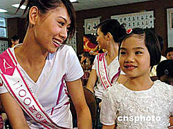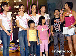 參加2004亞洲小姐競選的香港十二位佳麗,九月四日來到香港保良局以關懷社會、宣揚愛心為題親善探訪入住兒童宿舍的一班小朋友。作者:錢興強