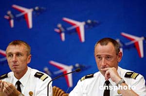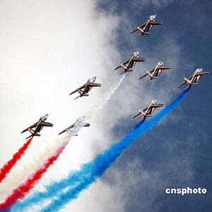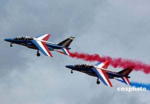 中新網(wǎng)9月7日電 日前,法國空軍飛行表演隊(duì)先遣組組長讓·馬克在北京透露,“法蘭西巡邏兵”飛行表演隊(duì)10月將隨希拉克總統(tǒng)到訪北京,在北京南苑機(jī)場(chǎng)舉行兩場(chǎng)表演,然后赴武漢、珠海、香港巡演。法蘭西巡邏兵是世界五大特級(jí)飛行隊(duì)之一,此次隨總統(tǒng)出訪是第一次。表演隊(duì)使用阿爾法噴氣教練機(jī)。此次表演由國防部外事辦公室和空軍有關(guān)單位主辦。中新社記者:鄭萍萍