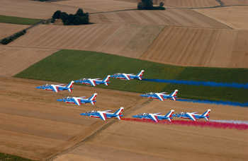 “法蘭西巡邏兵”飛行表演隊稱得上是世界最著名、同時也是世界最古老的飛行特技小組之一,他們的飛行秉承法國文化中固有的優雅風范,編排巧妙,它的飛行表演也并不在意是否雷霆萬鈞氣勢迫人,而是專注于芭蕾般的優美與法國擊劍一樣的敏捷和靈活。