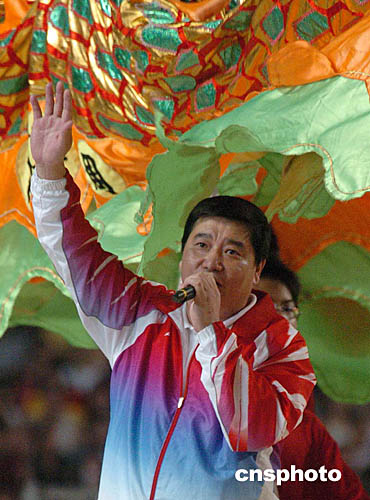 為歡迎國家奧運金牌代表團訪港,九月七日香港舉行“金牌精英大匯演”,奧運射擊金牌得主王義夫在“金牌精英大匯演”演唱。中新社記者:錢興強