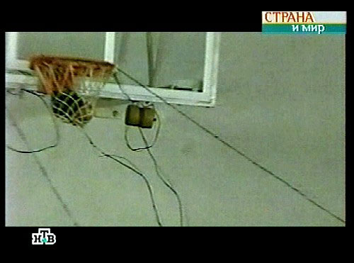 過后,健身室成了戰場。一名武裝分子蹲在地上處理炸彈,地上撒滿電線和相信是引爆炸彈的儀器。有些婦女抱著小孩,一枚炸彈就懸掛在穿過房間的幾條電線和籃球的網圈上。