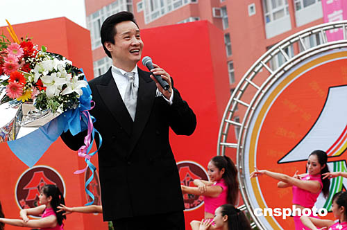 教師節前夕,中央電視臺在北京吉利大學錄制教師節晚會,中國著名的軍旅歌手閻維文為晚會演唱主題歌--《心聲》,慶祝第二十個教師節的到來。中新社記者:王麗南