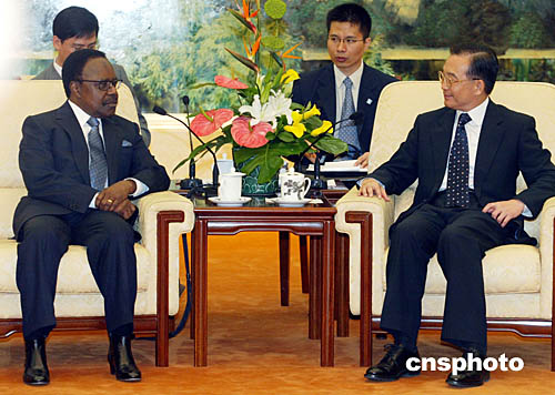 溫家寶今天下午在人民大會堂會見了到訪的加蓬總統邦戈。他高度評價中加關系,稱贊加蓬是中國在非洲的可靠朋友。他表示,中加經貿合作已有良好的基礎,合作前景廣闊,希望雙方進一步挖掘潛力,提高合作規模和質量,加強在經濟技術、貿易和人才培訓等方面的合作。