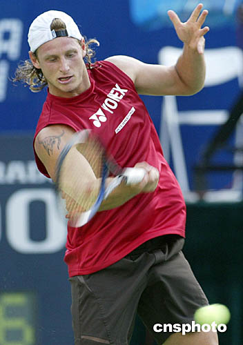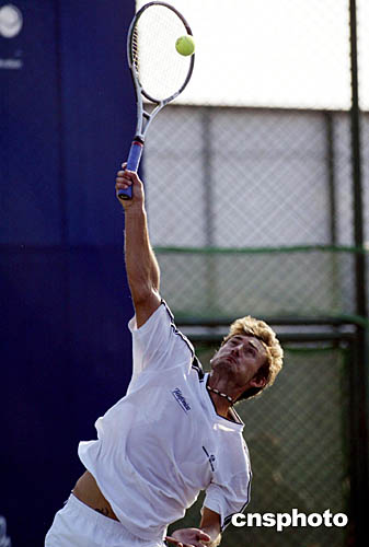 九月十二日,網(wǎng)球超級(jí)巨星費(fèi)雷羅在北京網(wǎng)球中心的外場(chǎng)進(jìn)行訓(xùn)練,為即將開始的中國(guó)網(wǎng)球公開賽正選賽作準(zhǔn)備。