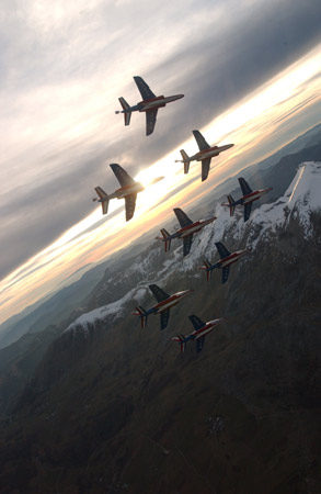 法國空軍的“法蘭西巡邏兵”飛行表演隊正式成立于1964年2月。飛行表演隊的飛機涂著同法國國旗一樣的紅、白、藍三種顏色,機群在空中做飛行表演時也常常把著三種顏色的煙跡留在空中。它象征著“自由”(紅色)、“民主”(白色)、“博愛”(藍色),體現了法國人民勇敢、浪漫的傳統和對未來美好的愿望。圖為精彩的飛行表演(來源:艦船知識網絡版)