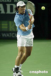 九月十三日,在北京網球中心中央球場舉行的中國網球公開賽男子單打比賽中,ATP巡回賽排名第二十五位的德國網球名將舒特勒,以二比零戰勝澳大利亞選手巴卡尼羅,順利晉級下一輪比賽。圖為巴卡尼羅在比賽中。中新社記者:盛佳鵬