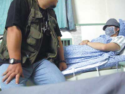 昨天,記者下午冒雨來到易茗正在治療的健宮醫院,樓道里并沒有像以往發生類似事件之后的媒體云集。在四樓骨科的“特需病房”內,記者沒有在病床上發現易茗本人,同病房陪床的病人家屬說易茗已經出去了。電話聯系到易茗本人之后,對方說“要轉院,不過還要回來取東西。”于是,記者在醫院的樓道里耐心等待著。幾個小時之后,易茗才回到病房。躺在病床上的易茗,戴著帽子,帽檐壓得很低,臉上蒙著醫用口罩,只露著一雙沒神的眼睛。記者詢問他的受傷情況,他一直回避,沒有回答,但看得出他左眼像是被擊打過的樣子。