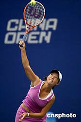 九月十五日,中國網球公開賽ITF女子單打第二輪比賽在北京網球中心的中央球場進行,中國選手鄭潔以二比零的比分戰勝新西蘭選手巴克爾。中新社記者:盛佳鵬