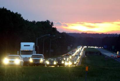 據路透社報道,颶風“伊萬”即將登陸美國東南部沿海。當地政府正努力說服上百萬居民盡快疏散至安全地帶。圖為美國南部沿海居民星夜撤出颶風登陸區。(固山)